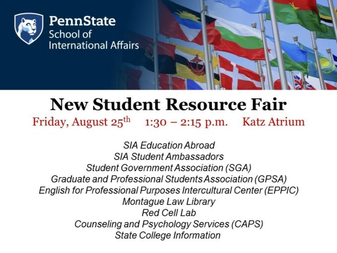 Learn about the Lewis Katz Building library, the surroudning community of State College, and opportunities to get involved with some of the great opportunities and resoruces available to SIA students, including: